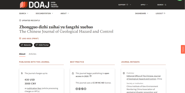 《中国地质灾害与防治学报》被国际知名数据库DOAJ收录