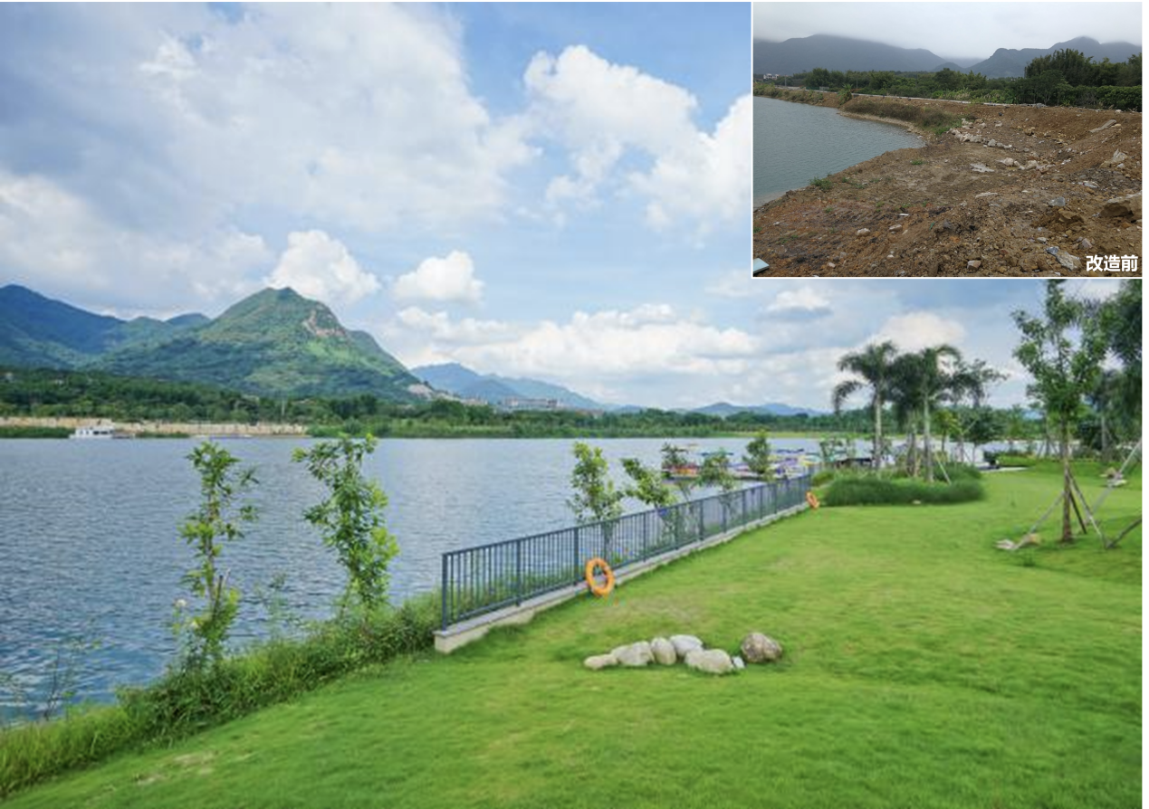 位于广州市增城区派潭镇的森林海废弃矿坑群生态修复与综合利用项目, 2021年纳入广东省首个探索利用市场化方式推进矿山生态修复试点,通过政府牵头、企业主导、技术单位支撑,推动144公顷“山水林田湖”生态修复与矿山生态产品价值转化,并实现2023年全年吸引游客超120万人次,年营收4亿元,带动1500多就业岗位,走出了一条“生态修复+文旅开发+农业种养” 的矿坑治理之路,生动阐述了“绿水青山就是金山银山”。