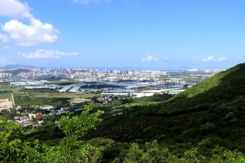 站在整治修复后的三亚抱坡岭山顶远眺三亚湾。