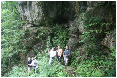 照片3 南仁东研究员(右一)与地质专家一起在大窝凼洼地查勘大型松动岩体