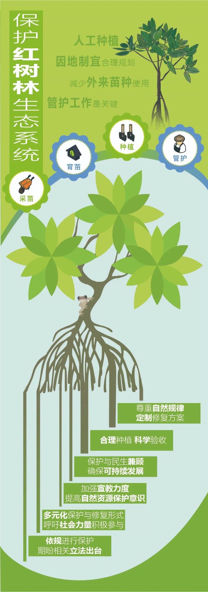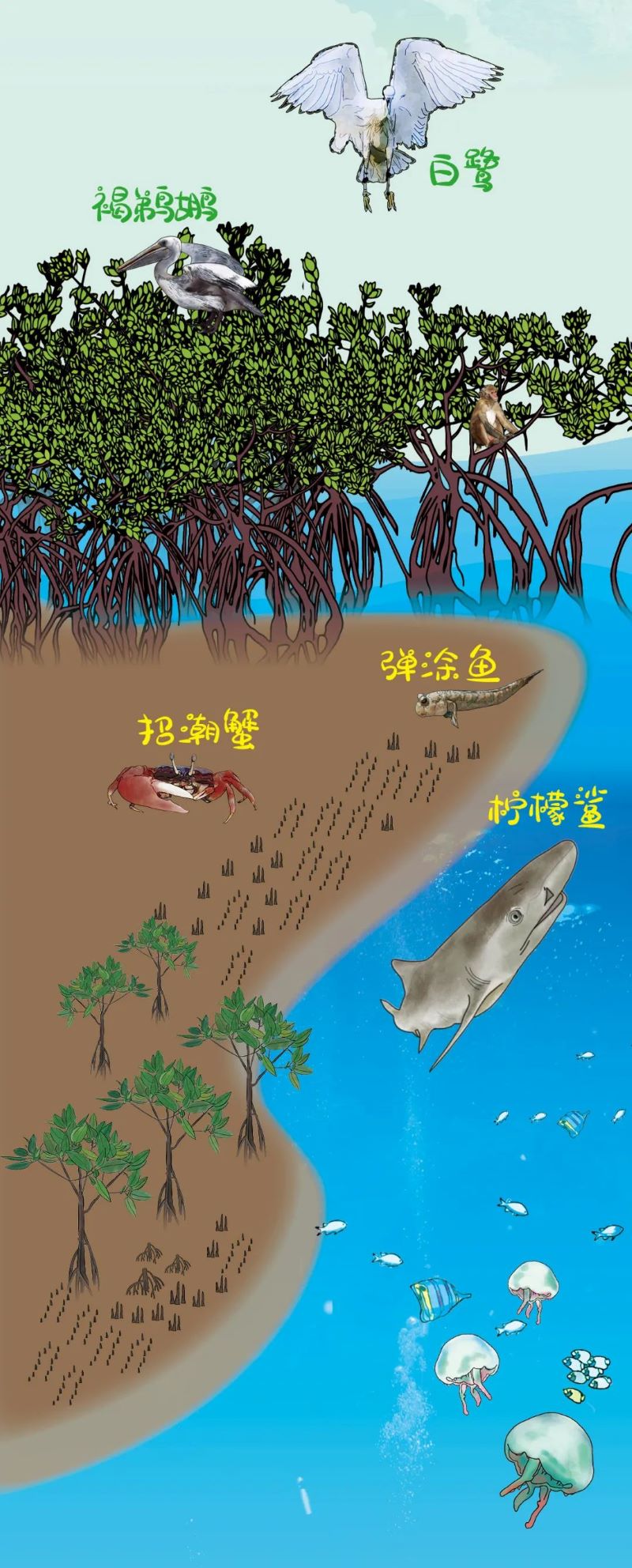 然而,在保护与修复红树林的过程中,也要因地制宜,综合考虑生态系统中其它生物的生存环境,定制生态修复方案。