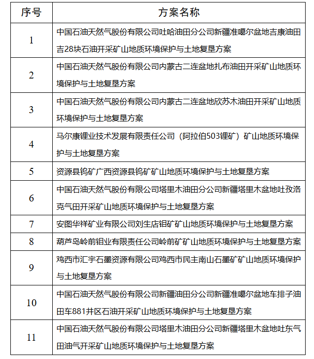 附件:11个通过审查的矿山地质环境保护与土地复垦方案名单