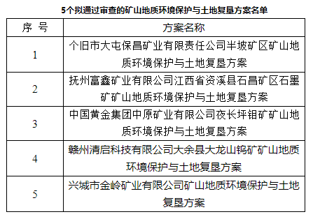 5个矿山地质环境保护与土地复垦方案审查结果公示