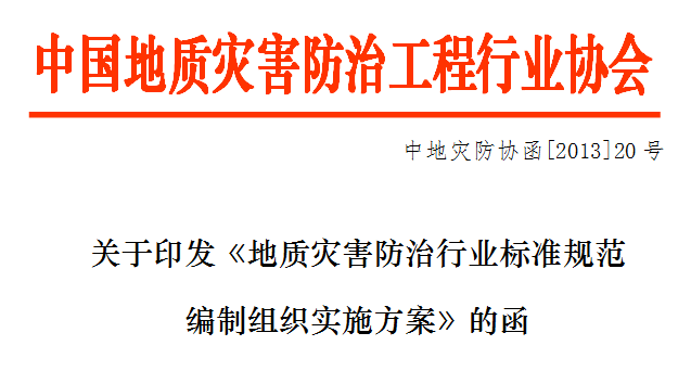 2013年11月25-27日,中国地质灾害防治工程行业协会(以下简称“协会”)在北京召开地质灾害防治系列标准规范制修订培训会议。会议期间,参会代表对标准规范编制工作的有关问题进行了讨论,提出了意见和建议。根据参会代表的意见和建议,协会秘书处对《地质灾害防治行业标准规范编制组织实施方案》进行了修改完善,现印发你单位,作为标准规范编制工作的依据。