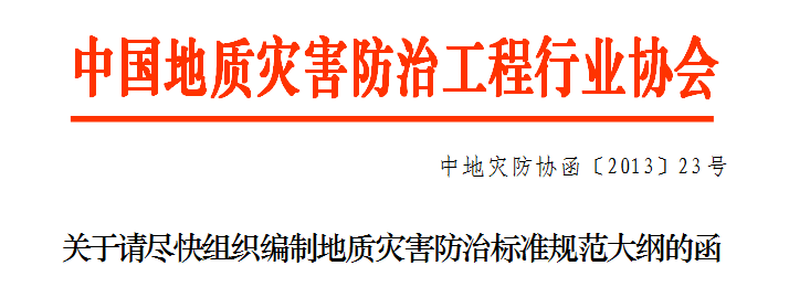 根据国土资源部办公厅《关于做好地质灾害防治标准规范编制工作》国土资厅函〔2013〕113号文的要求,中国地质地质灾害防治工程行业协会制定了《地质灾害防治系列行业标准规范编制计划一览表》。为保证编制工作顺利开展,按照标准规范编制一览表确定的时间要求,相应编制大纲提交时限分别为2014年1月、4月和7月(附件1)。请各牵头组织单位按照以上时间要求,督促编制单位按时提交标准规范编制大纲并报协会备案。