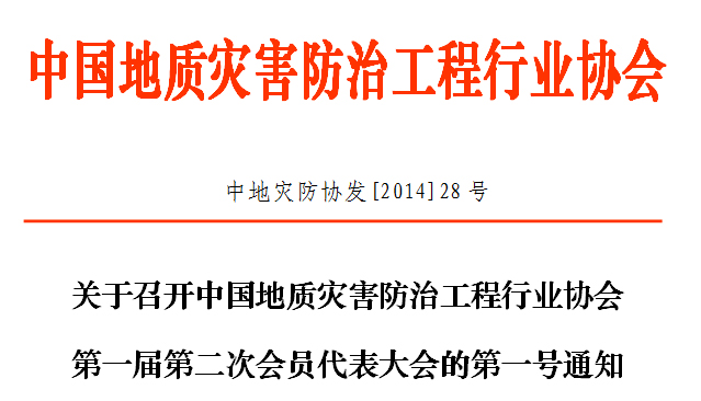 根据《中国地质灾害防治工程行业协会章程》的有关规定,经会长办公会研究,拟定于2015年一季度在北京召开中国地质灾害防治工程行业协会(以下简称“协会”)第一届第二次会员代表大会,具体安排如下: