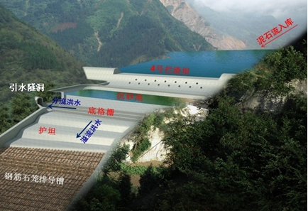 文家沟泥石流的成灾机理模型为“两源分离、集中堵溃、集中放大”型,因此,治理工程采取“固、拦、排、停”相结合的综合治理方案,针对泥石流形成要素的“水源”、“物源”采取“上游水石分治、中游固底护坡、下游拦挡停淤”的分级治理措施,达到从源头上控制泥石流的目的。即以分水工程将上游主要水源通过一号支沟引离中游的巨大物源区,导入绵远河,切断水源与物源结合的可能性;对中游松散的巨大物源区采用钢筋块片石砌体的软性方式固坡护底,不让其启动;在下游沟口区设拦挡停淤工程,将上游仍可能冲出的固体物源停积在预定区域,同时全程辅以监测维护。